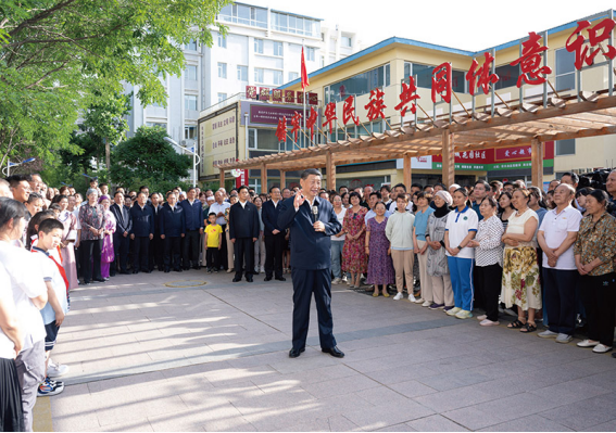 2024年6月19日至20日,中共中央總書記、國家主席、中央軍委主席習(xí)近平在寧夏考察。這是19日下午,習(xí)近平在銀川市金鳳區(qū)長城花園社區(qū)考察時,同社區(qū)居民親切交流。 新華社記者 謝環(huán)馳/攝