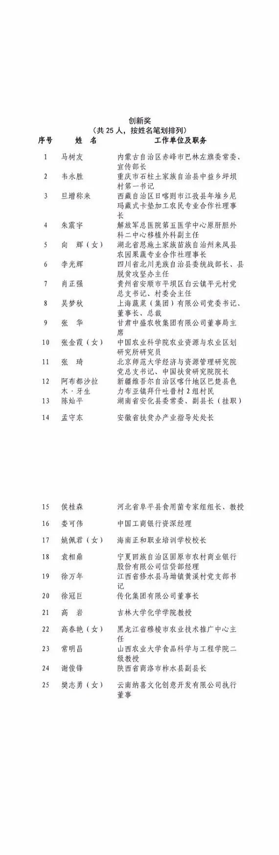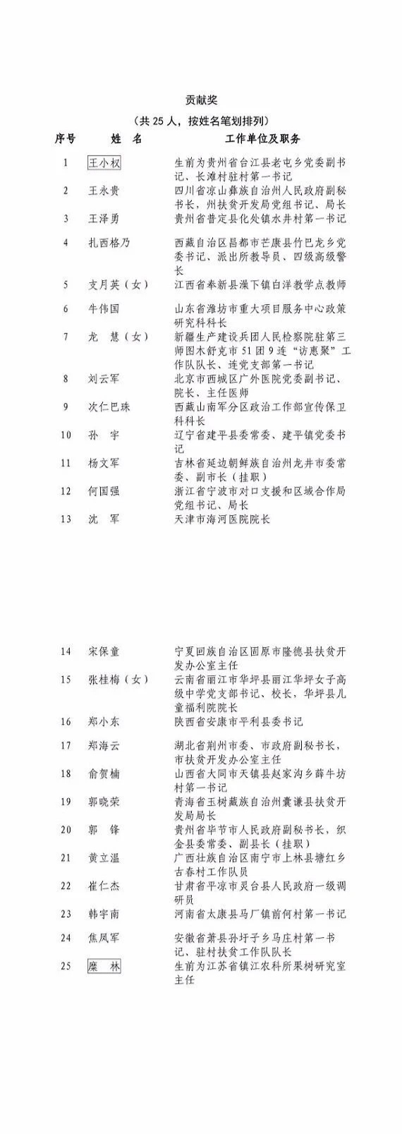 2020年全國脫貧攻堅獎獲獎建議名單公示