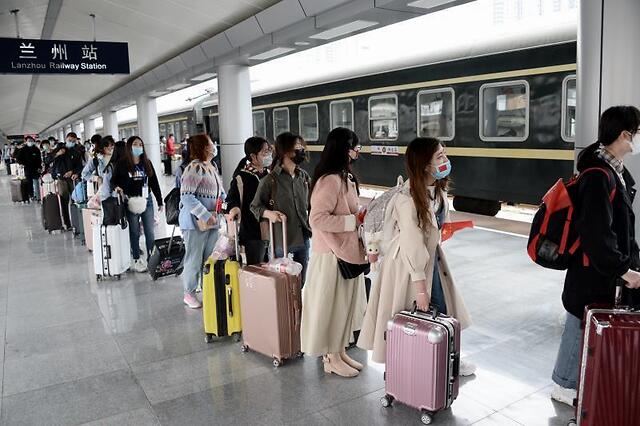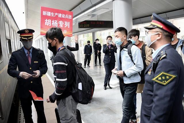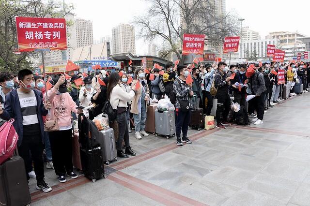 4月17日15時25分,蘭州開往新疆阿克蘇的學生專列從蘭州車站出發,來自甘肅、青海、四川等地區的1094名塔里木大學的學生搭乘此次列車開啟了返校之旅。