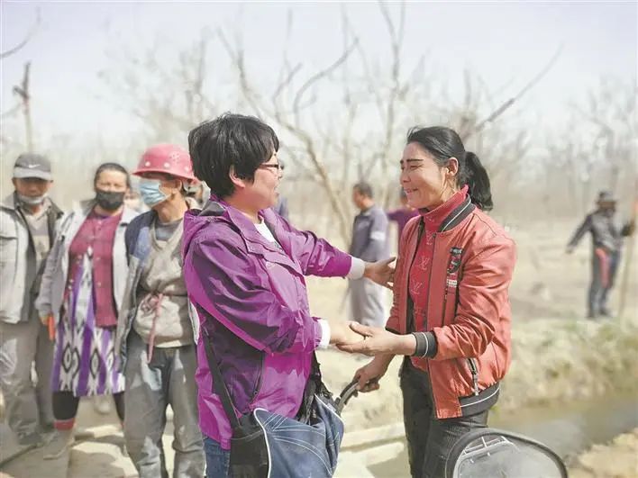 在一次現(xiàn)場(chǎng)培訓(xùn)后,古麗胡瑪爾(右)熱情地拉著張銳的手,連聲表示感謝(資料圖片)。張銳 提供