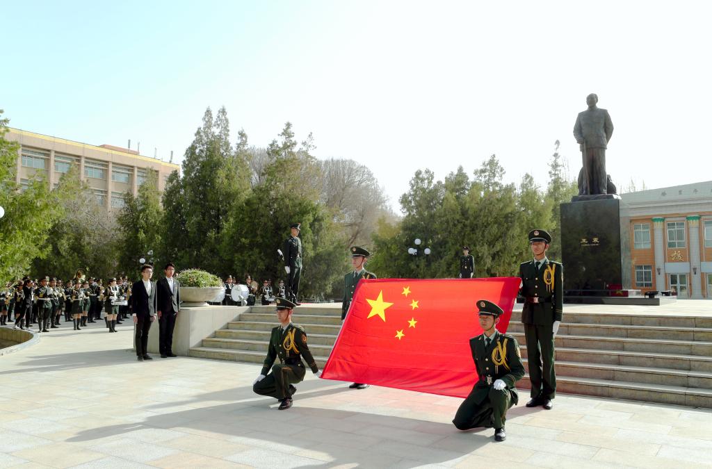 儀式現場莊嚴肅穆,迎國旗儀式舉行。塔里木大學趙雙喜攝