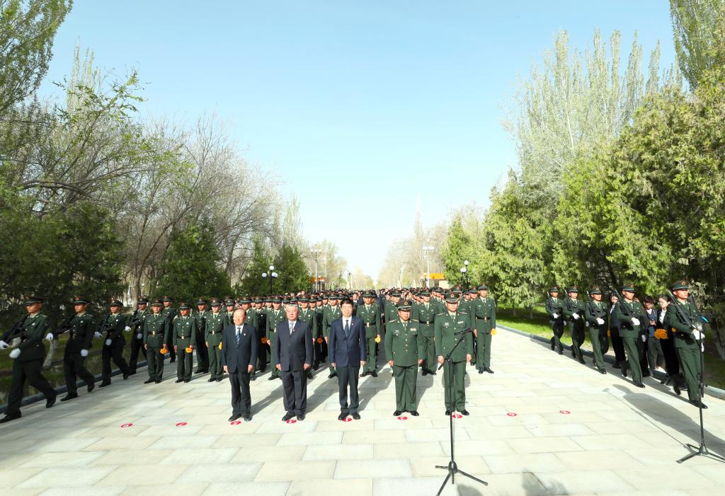 中國青年網阿拉爾4月6日電(記者左橙通訊員楊寶仁)傳承紅色血脈,銘記革命先烈。4月5日上午,紅色文化廣場正中央,王震將軍銅像傲然挺立、巍然聳立。清明節是我國的傳統節日,塔里木大學黨委書記趙光輝,黨委副書記、校長張傳輝,一師人武部政委曹登峰大校,一師人武部部長呂志剛大校,黨委副書記、紀委書記單洪山,黨委常委、副校長盧光志,以及全體副處以上干部和師生代表、一師人武部官兵代表聚集在紅色文化廣場,整齊列隊站在王震將軍銅像前,懷著無比崇敬的心情,一起緬懷先烈的豐功偉績和崇高精神,表達深切悼念和無限敬仰,更表達秉承烈士遺志,傳承紅色血脈、奮力推進兵團特點、南疆特色高水平大學建設的堅定信心和堅強決心。