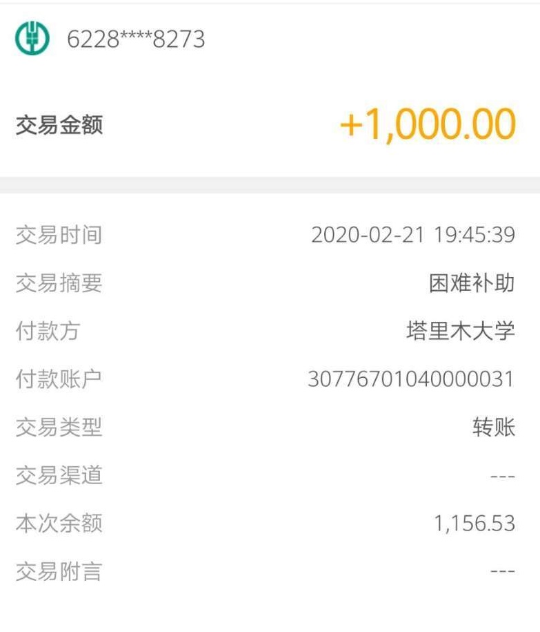 疫情發(fā)生后,塔里木大學(xué)十分關(guān)心湖北籍學(xué)生特別是家庭經(jīng)濟(jì)困難學(xué)生的身體狀況和生活情況,及時(shí)開展暖心資助工作。