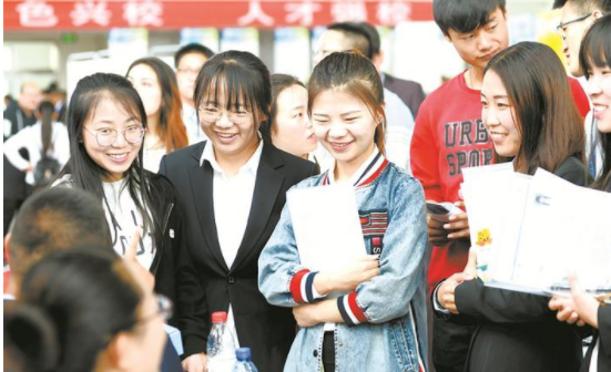 ?4月11日,塔里木大學應屆畢業生在招聘會上與用人單位洽談就業事宜。兵團日報記者 王志清 攝