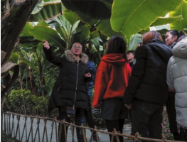 12月16日,在阿拉爾市印象藍泊灣生態觀光園,塔里木大學植物科學學院2012年畢業的齊華玲給游客講解植物生長知識。