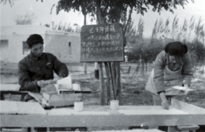 沒有校舍,自己蓋;沒有糧食,自己種;沒有教具,自己做。師生住的是地窩子,睡的是紅柳床,黑板掛在樹干上,講義放在膝頭上。