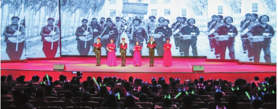 12月14日,塔里木大學動物科學學院學生在表演詩朗誦《甲子學府胡楊情》。當日,該學院舉辦以“胡楊精神育棟梁奉獻青春建邊疆”為主題的文藝晚會。