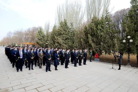 天地英雄氣,千秋尚凜然。清明時節,緬懷英烈祭忠魂,撫今追昔思奮進。4月2日一大早,塔里木大學全體處級干部與師生代表,手捧鮮艷的小黃菊,一同來到紅色文化廣場,莊嚴列隊站在王震將軍銅像前,懷著無比崇敬的心情,緬懷先烈的豐功偉績和崇高精神,表達深切悼念和無限敬仰,更表達秉承烈士遺志,傳承紅色血脈的堅定信心決心。