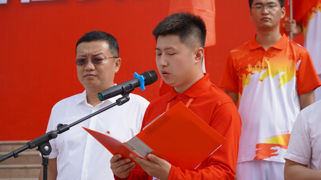 暑期“三下鄉”學生代表周志強代表全體出征隊員莊嚴承諾,他說:“作為新時代胡楊青年,應勇于擔當奉獻,不負人民期待與時代重托,始終牢記青年一代的使命擔當,服務新疆,服務人民,以青春之名,赴時代之約,把青春之花綻放在祖國的南疆大地上。請黨放心,強國有我!”