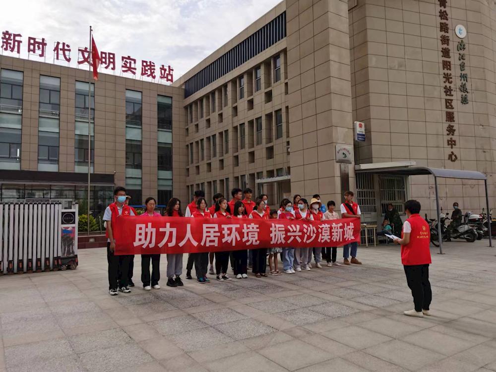 7月3日,“助力人居環(huán)境,振興沙漠新城”三下鄉(xiāng)社會實踐團在領(lǐng)先商業(yè)街等地分發(fā)創(chuàng)衛(wèi)宣傳單頁,開展環(huán)境衛(wèi)生類志愿服務(wù)活動,學(xué)生負責(zé)人達彥騰說道:“我們是大學(xué)生,也是胡楊青年志愿者,衷心希望我們的實踐項目能為這個城市做些什么。”