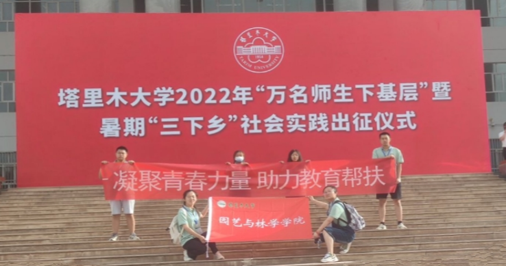 7月1日上午九時(shí),園藝與林學(xué)學(xué)院“凝聚青春力量,助力教育幫扶”團(tuán)隊(duì)在三下鄉(xiāng)志愿活動(dòng)啟動(dòng)儀式上的全體成員合照,出征時(shí),隊(duì)員們滿懷激情,朝氣蓬勃,在學(xué)院樓前和校門口做合照留影,用相機(jī)記錄下激動(dòng)人心的一刻。一段新的征程在隊(duì)員們腳下展開,期待著我們?cè)诎⒗瓲柺械拇蟮厣洗蠓女惒剩亚嗄耆说幕盍セ鶎樱谀抢锇l(fā)光發(fā)亮,切實(shí)助力基層教育建設(shè),擁抱社會(huì)。