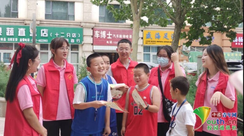 圖為志愿者向社區小朋友宣講假期防止溺水安全知識。中國青年網通訊員 俞芳榮 攝。