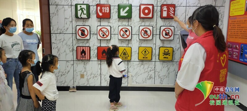圖為志愿者教小朋友認識消防安全知識圖片。 中國青年網通訊員 俞芳榮 攝。