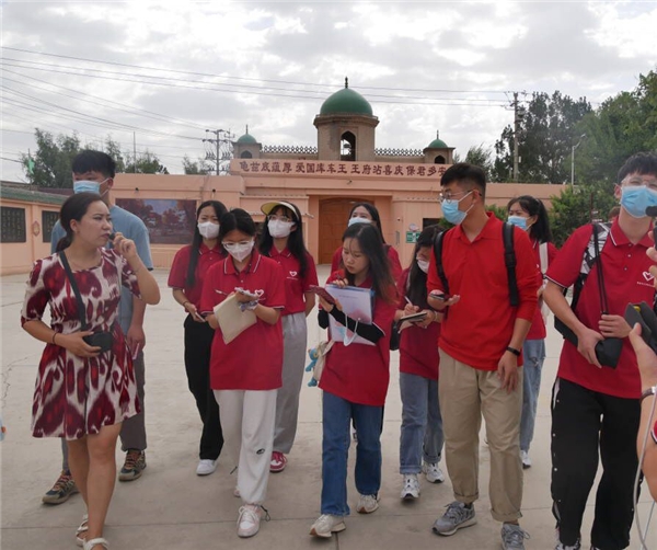 圖為指導老師賈東為團隊成員講解庫車地區歷史文化。中國青年網通訊員 馬美 攝