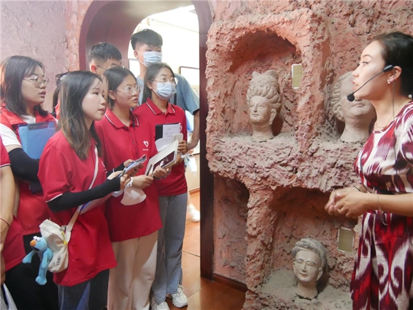圖為團隊成員認真聆聽龜茲博物館講解。中國青年網通訊員 高潔 攝