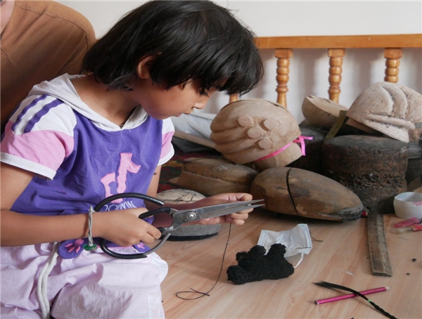 沙雅縣的艾買爾·吐尼牙孜是目前年齡最小的獲得家族真傳,制作卡拉庫爾胎羔皮帽的手工藝人,也是家族中的第四代傳人。談起自己學習制作羊皮帽的過程,最離不開的就是自己的父親,家族的傳承使他產生一種使命感。從小的耳濡目染讓艾買爾·吐尼牙孜對羊胎羔帽的制作有一種深深的執著,這樣的環境也影響了家庭里的其他成員。