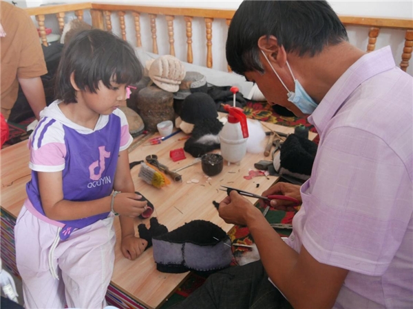 圖為傳承人海力千木·克比爾的妹妹在制作手工藝品。通訊員 李雙鳳 攝