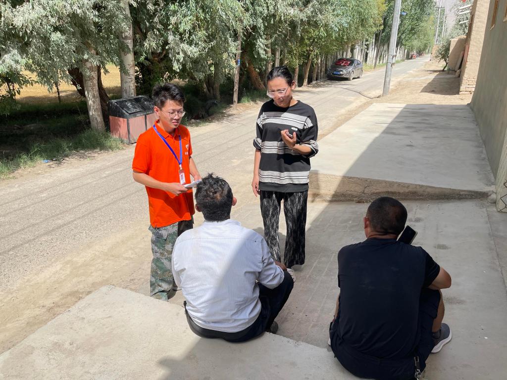 圖為塔里木大學“石榴花開”實踐隊隊員對居民群眾實地走訪調研。