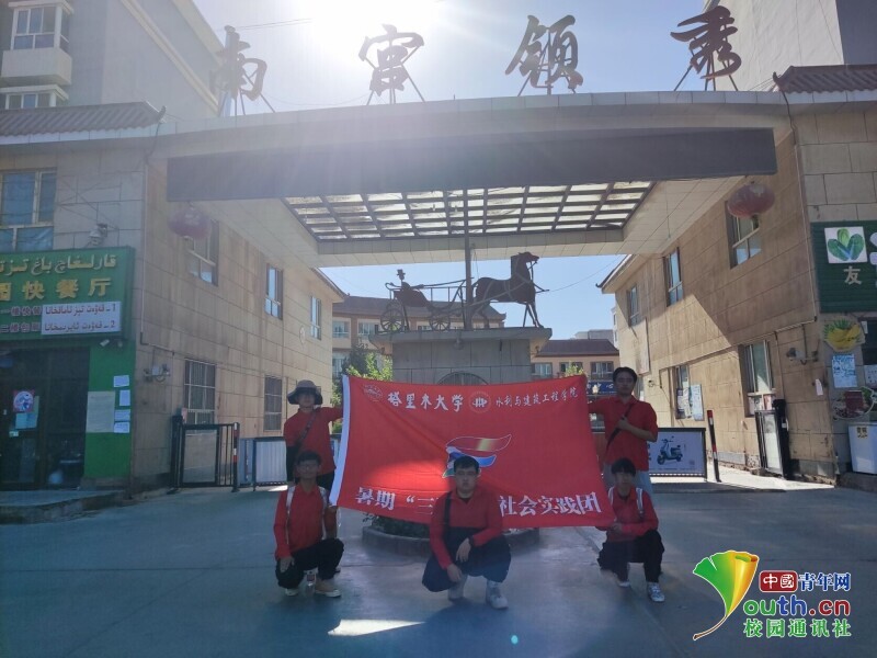 圖為實踐隊員在南宮領秀小區的宣傳合影的圖片。中國青年網通訊員 崔騰 攝
