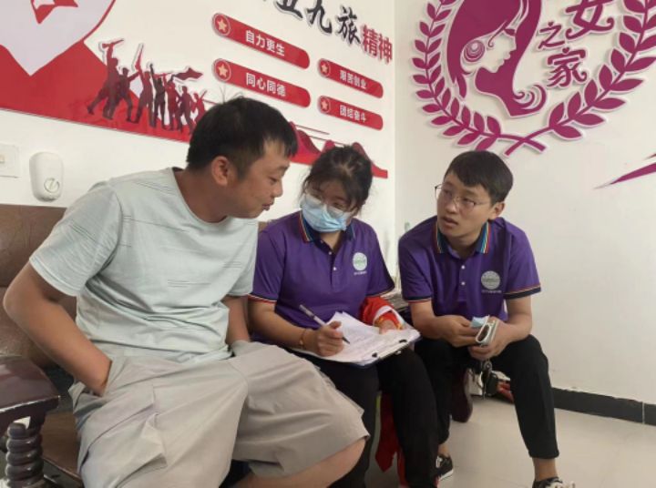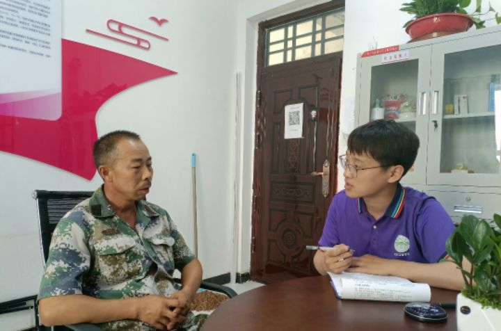 圖為實(shí)踐隊(duì)員與連隊(duì)兩委訪談畫(huà)面(岳東波攝)