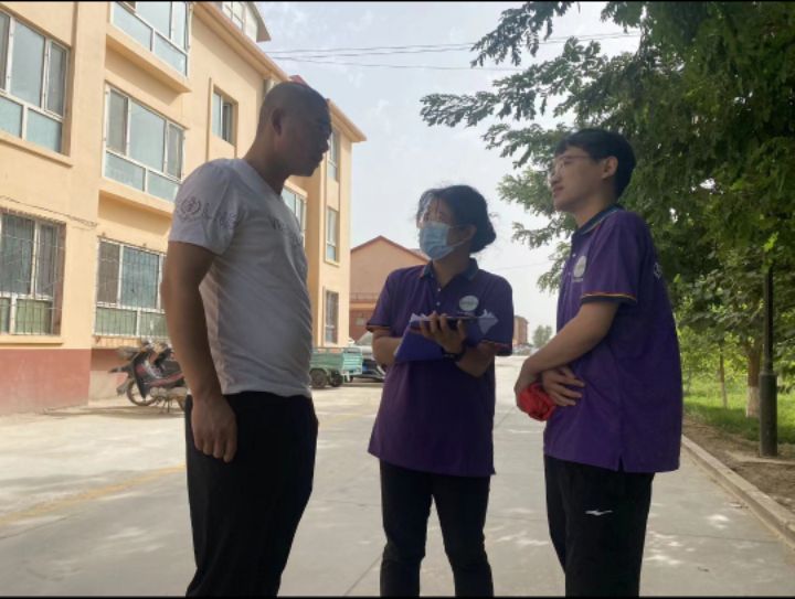 實(shí)踐隊(duì)員正與十團(tuán)十九連兩委深入訪談(岳東波攝)