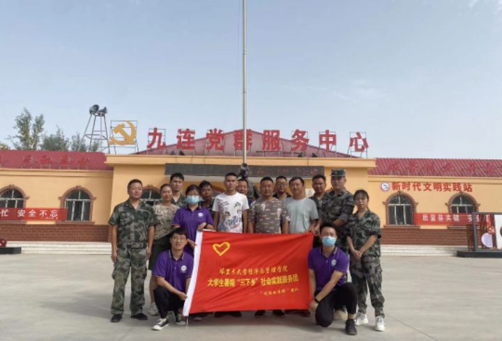 實(shí)踐人員與十團(tuán)十九連工作人員合影留念(岳東波攝)
