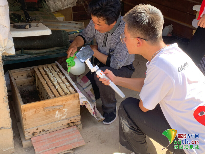 圖為當地村民為團隊成員講解中蜂養殖知識。中國青年網通訊員 楊轉萍 供圖