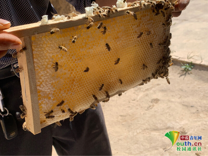 圖為當地村民為團隊成員展示蜂箱。中國青年網通訊員 楊轉萍 供圖