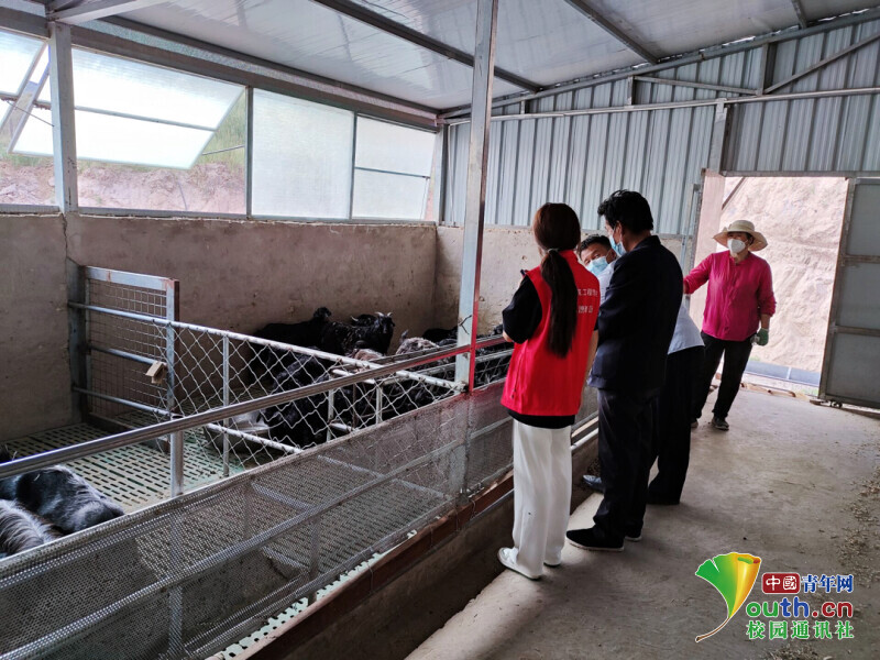圖為團隊成員與當地養殖羊場主人了解養殖情況。中國青年網通訊員 曹曉龍 供圖