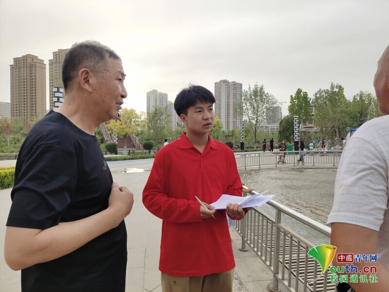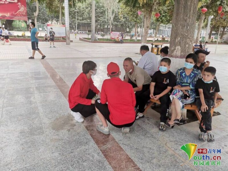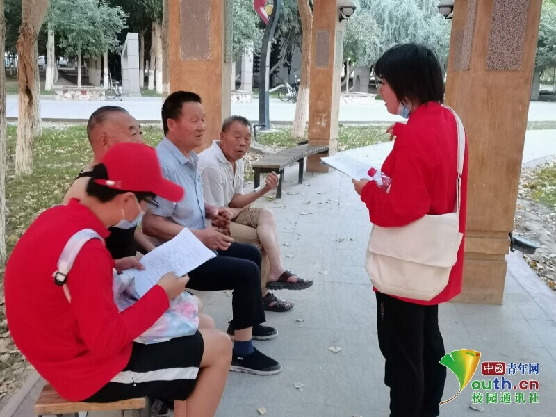 ?圖為隊員們在和田市團結廣場向居民進行實地調研。中國青年網通訊員 牛侖 攝