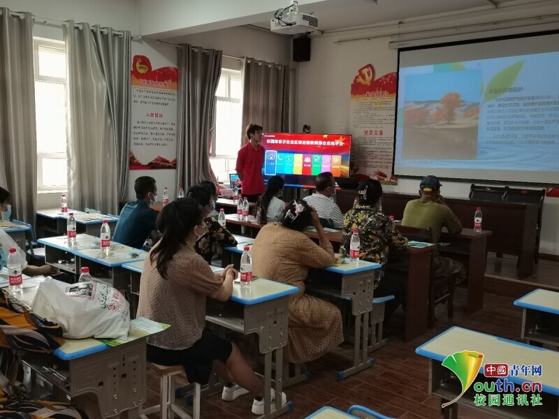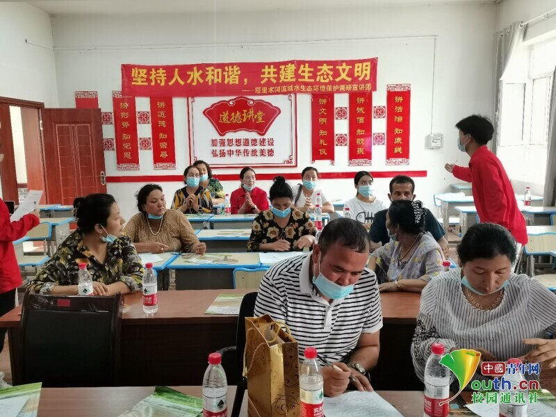 圖為在阿克蘇紅橋街道辦二樓會議廳組織居民了解環境保護知識。中國青年網通訊員 牛侖 攝