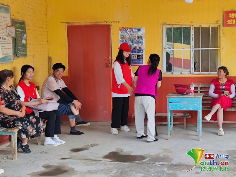 圖為宣講團成員在社區(qū)發(fā)放宣傳手冊。中國青年網(wǎng)通訊員 杜艷煒 攝