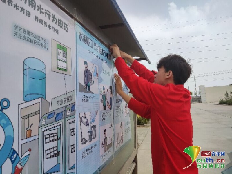 ??圖為實(shí)踐團(tuán)成員在企業(yè)張貼海報(bào)。中國(guó)青年網(wǎng)通訊員 高亞梅 供圖