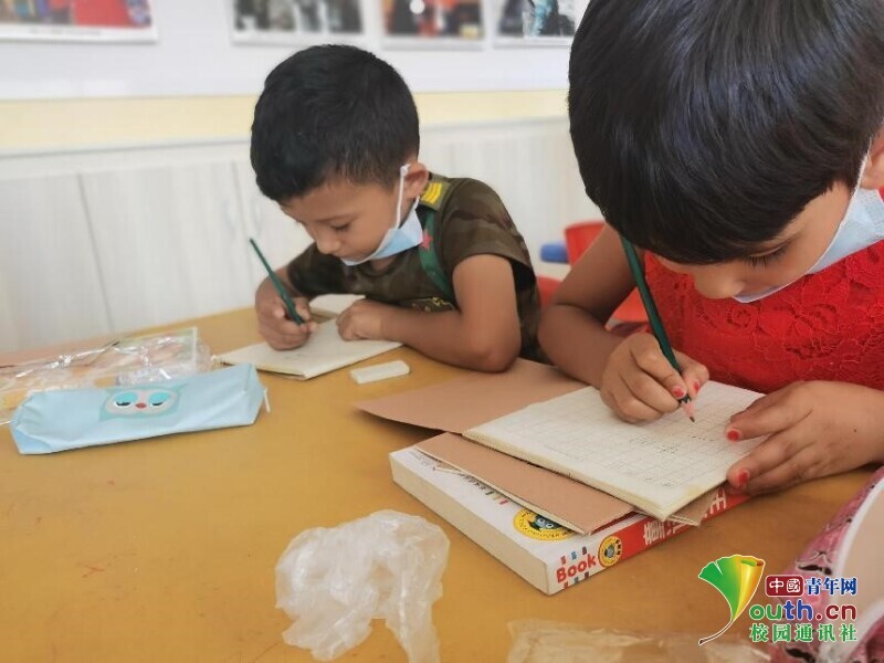 圖為孩子們正在認真學習、練字。中國青年網通訊員 譚媛 攝