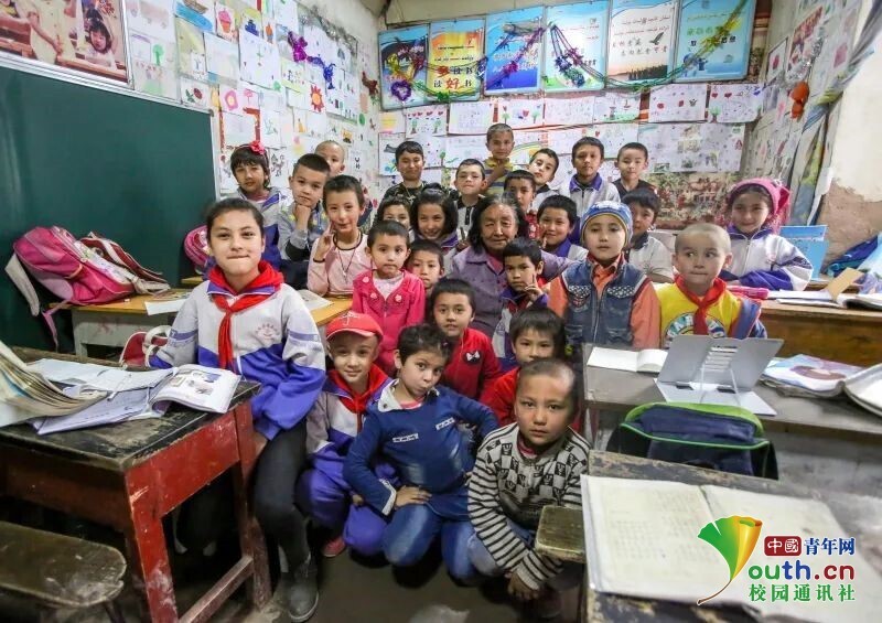 圖為潘玉蓮在位于新疆喀什地區(qū)疏勒縣的愛心小課堂與學生們合影。 中國青年網通訊員 譚媛 攝