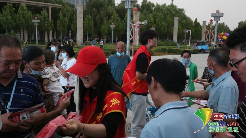 圖為團隊成員給過往群眾分發禁毒防艾宣傳單和禮品。中國青年網通訊員 尹亞偉 供圖