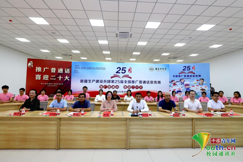 中國青年網阿拉爾9月18日電(通訊員 王江艷)9月16日,新疆生產建設兵團第25屆全國推廣普通話宣傳周啟動儀式在新疆烏魯木齊和新疆阿拉爾市舉行。啟動儀式上展演了由塔里木大學國家語言文字推廣基地制作的《推廣普通話 喜迎二十大》推普周宣傳片。宣傳片通過身處南疆腹地的塔里木大學在語言文字教育事業中,立足新疆南疆四地州,秉持和踐行“為黨育人,為國育才”,落實立德樹人根本任務,以鑄牢中華民族共同體意識為主線,開展語言文字應用研究、活動推廣、教育培訓、合作交流等工作,展現奮力譜寫中華民族偉大復興中國夢的新疆篇章。
