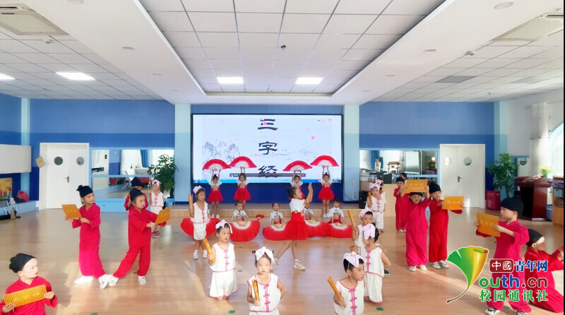 圖為一師阿拉爾市塔里木第二幼兒園小朋友表演《三字經》。中國青年網通訊員 王江艷 攝