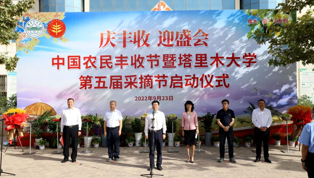 塔里木大學黨委書記趙光輝宣布中國農民豐收節暨塔里木大學第五屆采摘節開始。