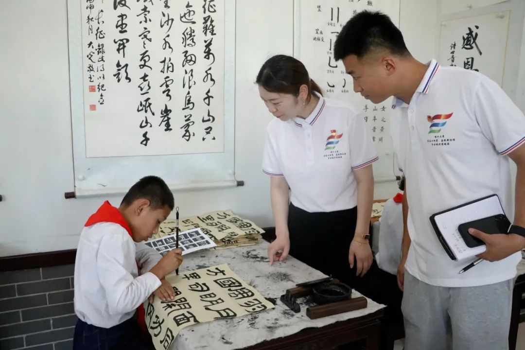 喀什大學(xué)暑期社會實(shí)踐團(tuán)參觀托克扎克鎮(zhèn)中心小學(xué)書法教室