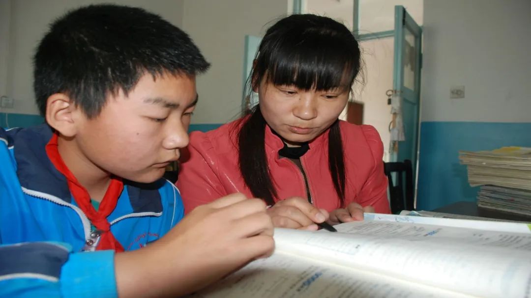 保定學(xué)院2019屆畢業(yè)生劉艷紅在且末縣第二中學(xué)任教,課間輔導(dǎo)初二年級學(xué)生