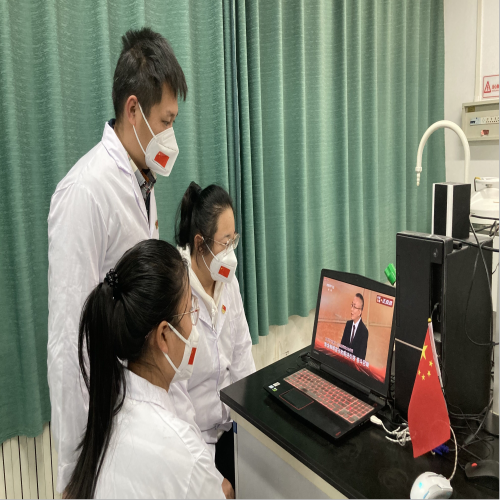 校醫院劉永君醫生當值負責采集核酸,在完成工作任務后,第一時間觀看了開幕會盛況,并和大家交流收看感想。“我要牢記初心使命,立足工作崗位實際,勇當學校公共安全衛生的護佑‘先鋒’,全力守護好廣大師生員工的身體健康和生命安全。”