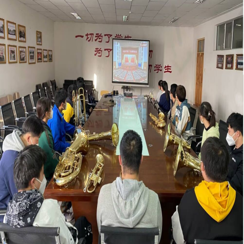 一大早,軍樂團的同學們,在參加完常規早訓后,懷著激動的心情,圍坐在屏幕前,準備好筆和記錄本,收看大會直播。