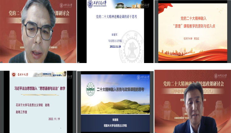 為深入學習貫徹黨的二十大精神、扎實推進習近平新時代中國特色社會主義思想和黨的二十大精神“三進”工作。11月19日下午,黨的二十大精神融入高校思政課研討會暨全國高校思政課“手拉手”集體備課中心集體備課活動在線上成功舉辦。西安交通大學馬克思主義學院,新疆生產建設兵團所屬8所高校(石河子大學、塔里木大學、新疆政法學院、新疆石河子職業技術學院、石河子工程職業技術學院、塔里木職業技術學院、鐵門關職業技術學院、新疆生產建設兵團興新職業技術學院)馬克思主義學院(思政部)、以及國內其他兄弟高校馬克思主義學院師生共計5000余人參加此次研討和集體備課活動。