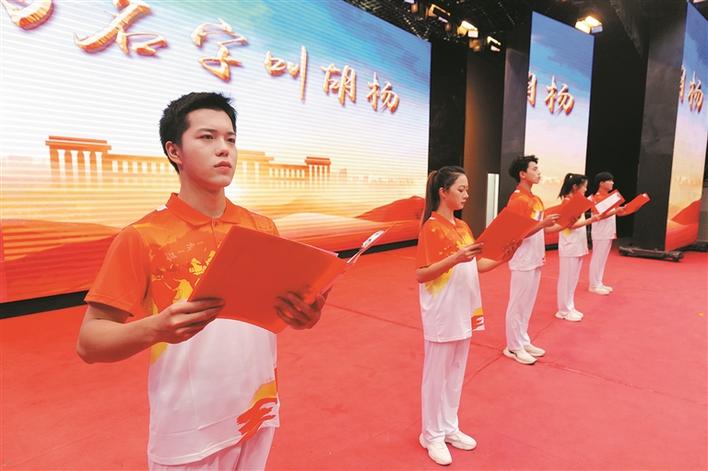 塔里木大學在一師三五九旅屯墾紀念館里開展“青少年游基地、學黨史”活動,師生重溫入黨誓詞(資料圖片)。塔里木大學 提供