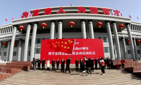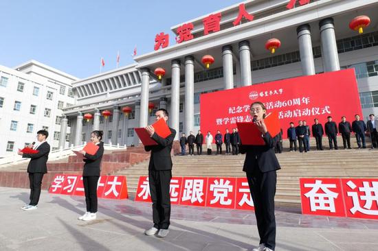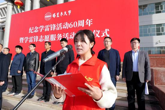 塔里木大學(xué)黨委書記趙光輝為志愿者團(tuán)隊(duì)授旗,并宣布“塔里木大學(xué)紀(jì)念學(xué)雷鋒活動(dòng)60周年暨學(xué)雷鋒志愿服務(wù)活動(dòng)正式啟動(dòng)。”