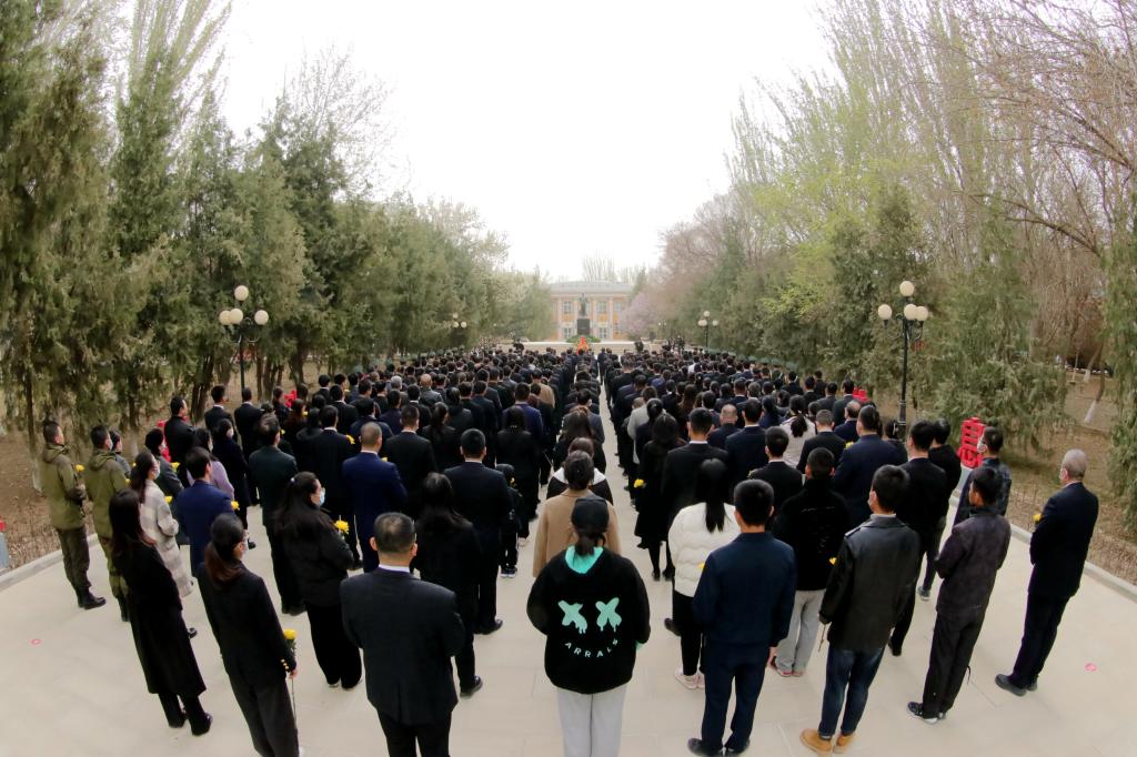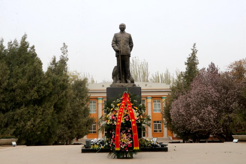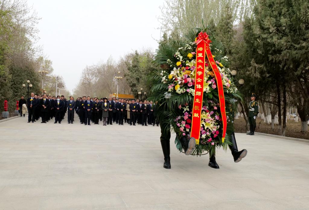4月5日上午,塔里木大學舉行向王震將軍銅像敬獻花籃儀式。