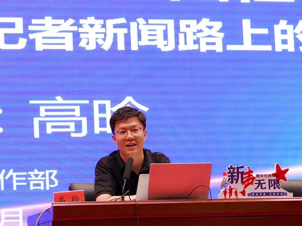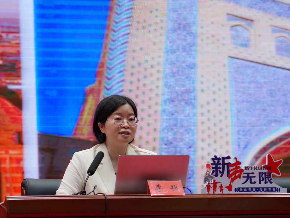 新華社新疆分社記者高晗以《講好新疆故事、履行“國社”擔當——一名新華社記者新聞路上的行與思》為題,分享了自己作為一名新華社記者在采訪時的真實經歷,通過生動鮮活的案例,鼓勵同學們走向田野,充分感受和厚植自己的愛國情懷。