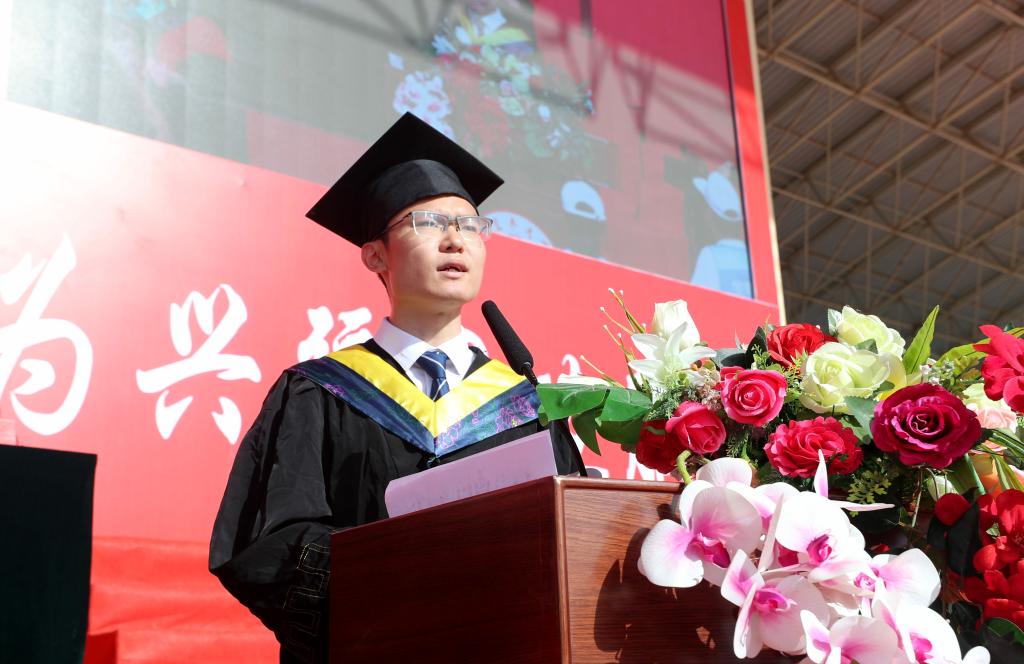 三年前,我們懷揣著夢想和追求來到塔里木大學。這是一座知識的殿堂、思想的熔爐和理想的孵化器。在這里,我們獲得了廣闊的學習和成長空間。畢業生代表、生物學2020級博士研究生沙帥帥發言,感謝老師們的辛勤付出,感謝家人和朋友們的支持與鼓勵。他表示,即將踏上新的征程,會時刻保持對知識的渴求和學習的姿態,緊跟時代的步伐,保持勇于探索的精神,通過努力和奮斗,持續不斷地提升自己,成為更好的自己。
