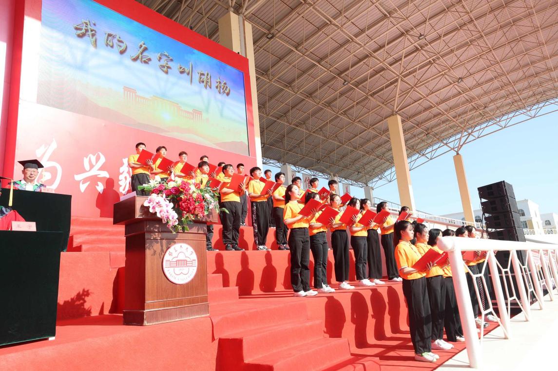 光陰荏苒,時光短暫。黨委副書記、校長張愛萍主持時指出,今天,你們向過去的求學生涯作深情的告白;明天,你們將懷揣夢想,奔赴下一場山海。母校深信你們一定會用自己的努力、奮斗與智慧,收獲屬于你們的成功與喜悅,為胡楊精神添彩,為母校爭光。